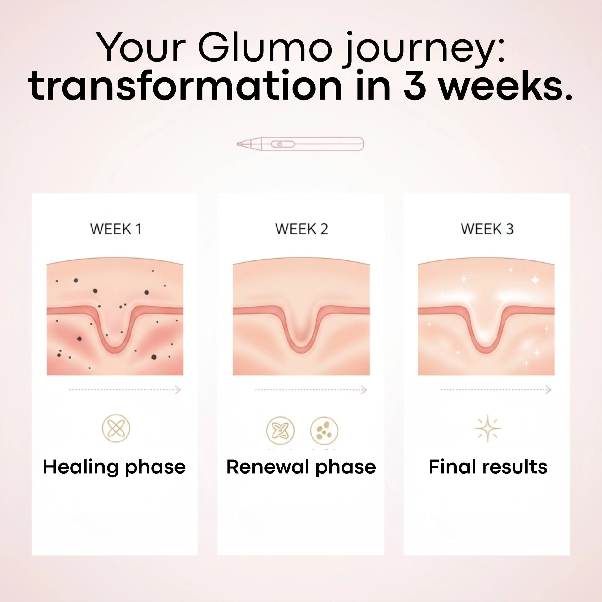 "I’ve struggled with acne scars and stubborn dark spots for years. After just a few sessions with Glumo, my skin finally looks clear and smooth again. The change after three weeks blew me away, I actually feel confident without makeup for the first time in forever!"