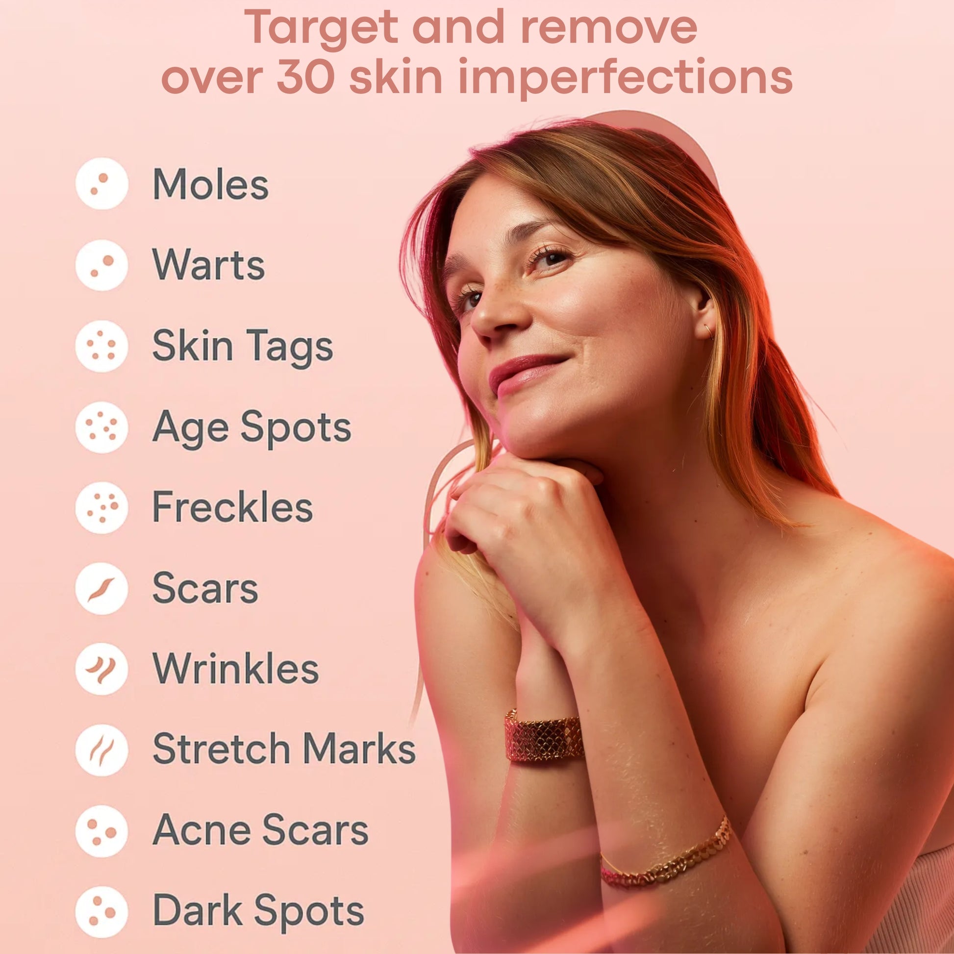 You can safely remove or reduce skin tags, moles, age spots, freckles, warts, scars, wrinkles, stretch marks, and dark spots. It also helps tighten loose skin and improve texture.